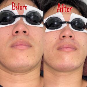 In his 3rd session, there has already been noticeable progress the beard doesn’t grow as much as before and isn’t as thick. As you can see in the picture, most of the remaining hair is just ingrown, which shows that the treatment is working. Some areas still have a bit of hair growth, but it’s much lighter now. Since his beard wasn’t very thick to begin with, his hair removal journey may not take too long to achieve a completely smooth result.