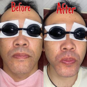 ヒゲ脱毛の施術結果です✨ 数回の施術後、ヒゲ周りがより清潔でなめらかになり、肌のトーンも明るく見えます。毎日のシェービングが楽になり、肌荒れも軽減!永久的な効果を目指して、あと数回の施術を続けていきます💪
