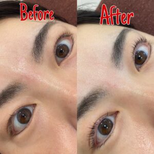 This is our regular customer who regularly comes for her eyelash perming. This is already her 7th session with us! She loves the results so far because she prefers a natural look soft, lifted lashes that enhance her eyes without needing mascara.