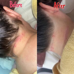 3rd session of nape hair removal, with the treatment focusing on the lower nape area where the hair tends to appear denser. So far, the results are very encouraging—the hair growth has noticeably reduced, the strands are finer, and there is no thick regrowth, showing that the treatment is responding well. Although she still needs a few more sessions to achieve permanent hair removal, the progress so far indicates smoother skin and more refined hair growth with each visit.