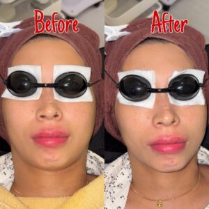 Second session for face hair removal ✨ So far the hair has become noticeably less, probably because her facial hair was already quite thin before starting, which usually allows results to appear faster. After this session, the hair on her upper lips and chin is now only a few fine strands, while the rest of the areas are already clear and smooth. With consistent sessions, the hair will continue to grow back slower and finer, giving an even cleaner and more refined look.