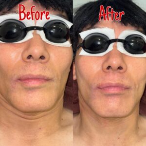 ひげ脱毛42回目の施術後、ほとんどの毛はなくなり、わずかに再生が見られる程度です。ひげは非常に太く強い毛のため、効果を得るには回数が必要ですが、持続的で高い減毛効果が実現されています。