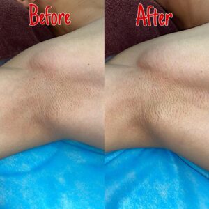This is the progress of our customer’s underarm SHR Super Hair Removal treatment. The photo shows his 6th session, and as observed, the underarm area now has significantly less hair compared to before. Since his hair was originally very thick, a few more sessions will still be required to achieve complete and permanent removal.